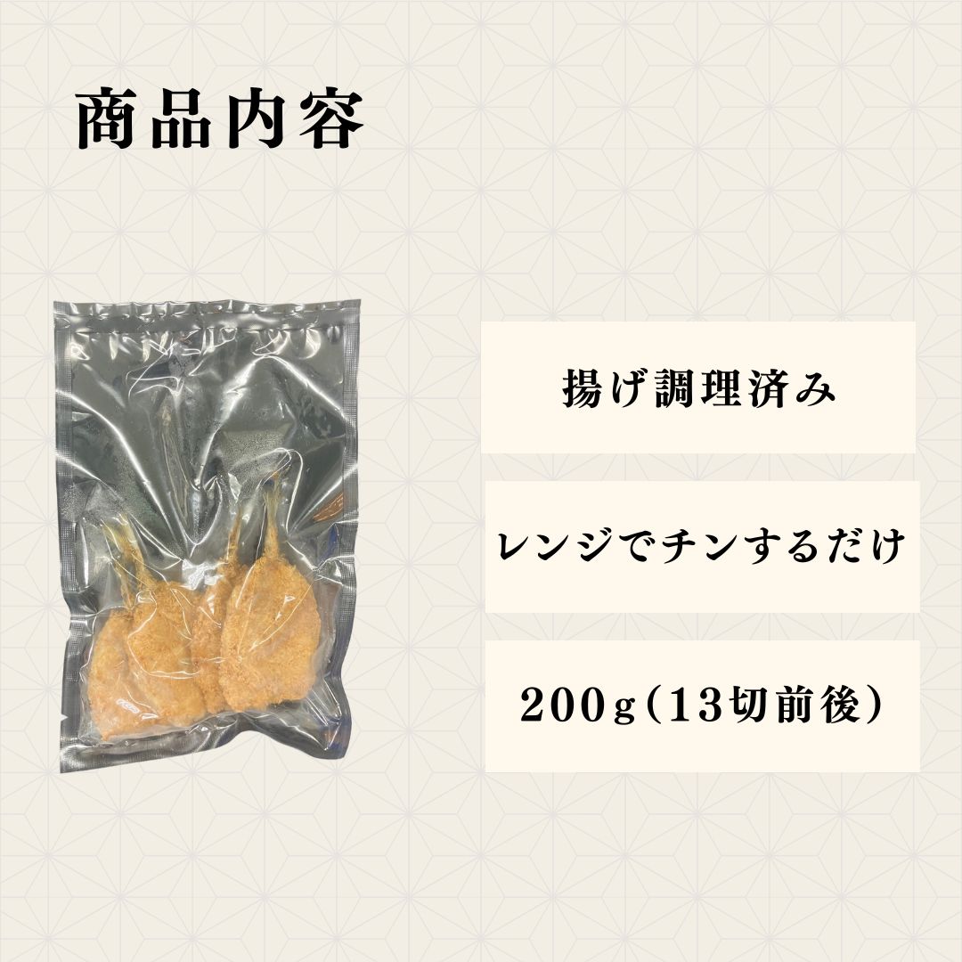 真アジ(島根県海士町近海産)、衣(パン粉(小麦を含む)、小麦粉、でん粉、小麦たん白)、食用なたね油/乳化剤、イーストフード、V.C